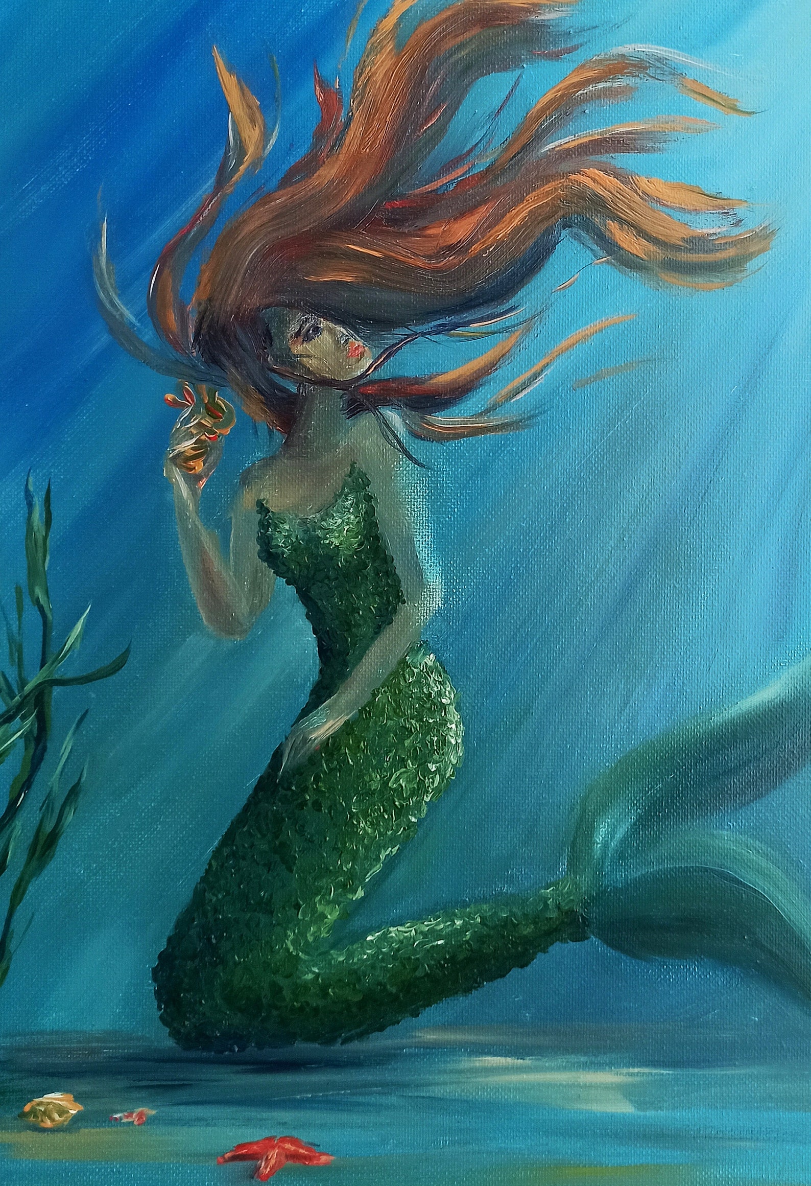 A Mermaid by John William Waterhouse. Traditionally, mermaid paint could only be used to make very bold, bright colors. Draw the horizon line with a straight edge and then transfer the mermaid drawing onto the canvas.